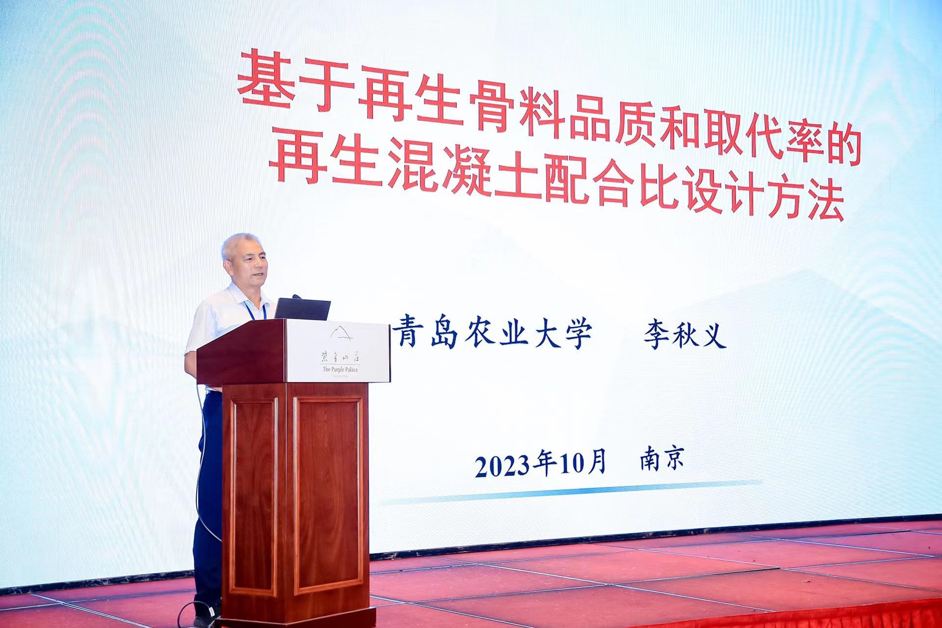 李秋义教授受邀在本次会议中做了分会场邀请报告,报告题目为《基于再生骨料品质和取代率的再生混凝土配合比设计方法》,系统介绍了再生骨料性能提升与质量控制技术、再生骨料品质和取代率对再生混凝土性能的影响,重点介绍了《再生混凝土配合比设计规程》(DB37/T 5176-2021)和《再生混凝土配合比设计标准》(T/CECS 1293-2023),为实现建筑垃圾资源化利用,促进行业可持续发展提供科学依据。