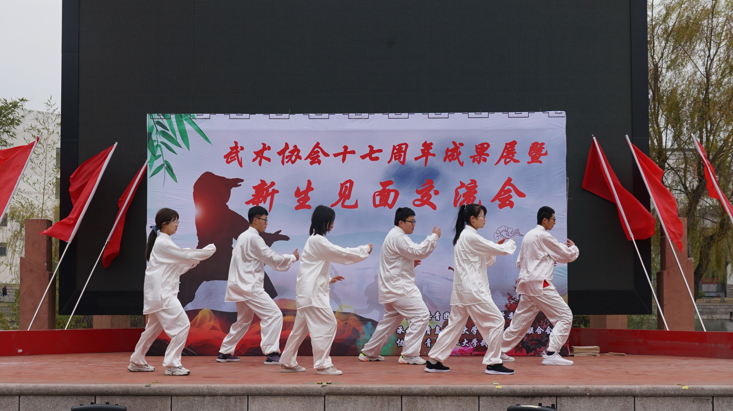 11月28日下午,青岛农业大学建筑工程学院武术协会十七周年成果展暨新生见面交流会于知音广场举行。出席本次活动的有城阳区武术协会副主席王建芳,武术协会日常事务指导、建筑工程学院团委书记姜涛,青岛农业大学武术队主教练、武术协会指导老师张广鹏,青岛农业大学大学生社团联合会主席,武术协会会长及各位武林人士。大家有缘欢聚,共赴往武林盛宴。