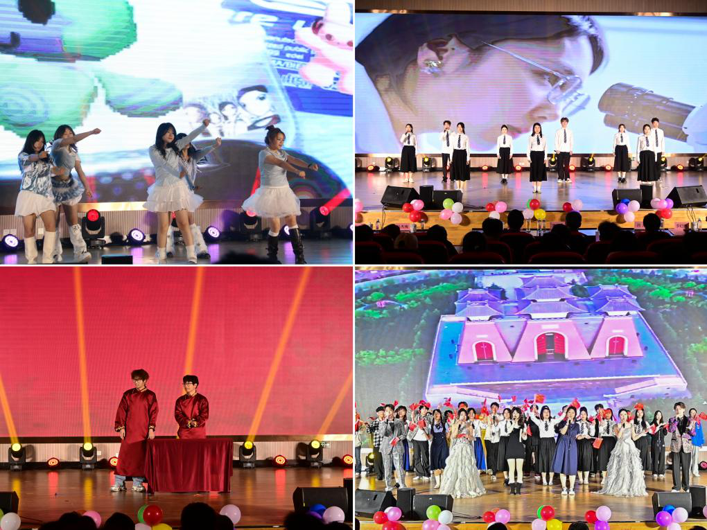 典礼期间,学院学子带来精彩纷呈的文艺表演。舞蹈串烧《借来的猫》活力四射,尽显青春朝气;三人合唱《如果月亮还没来》、歌曲串烧热情洋溢;小提琴竹笛合奏《美丽的神话》悠扬婉转、意境优美;动画配音《哪吒 2》趣味十足,唤起经典回忆;相声表演诙谐幽默,引得现场掌声不断;独舞《Soul Dance》灵动洒脱,多人朗诵《青春密码》昂扬向上;钢琴独奏《情书》温婉治愈,合唱《诀爱・尽》气势饱满。最后,全体参演人员共同唱响《相亲相爱》,将现场气氛推向最高潮。表演结束后,各位领导、老师与全体演职人员合影留念,定格美好瞬间。