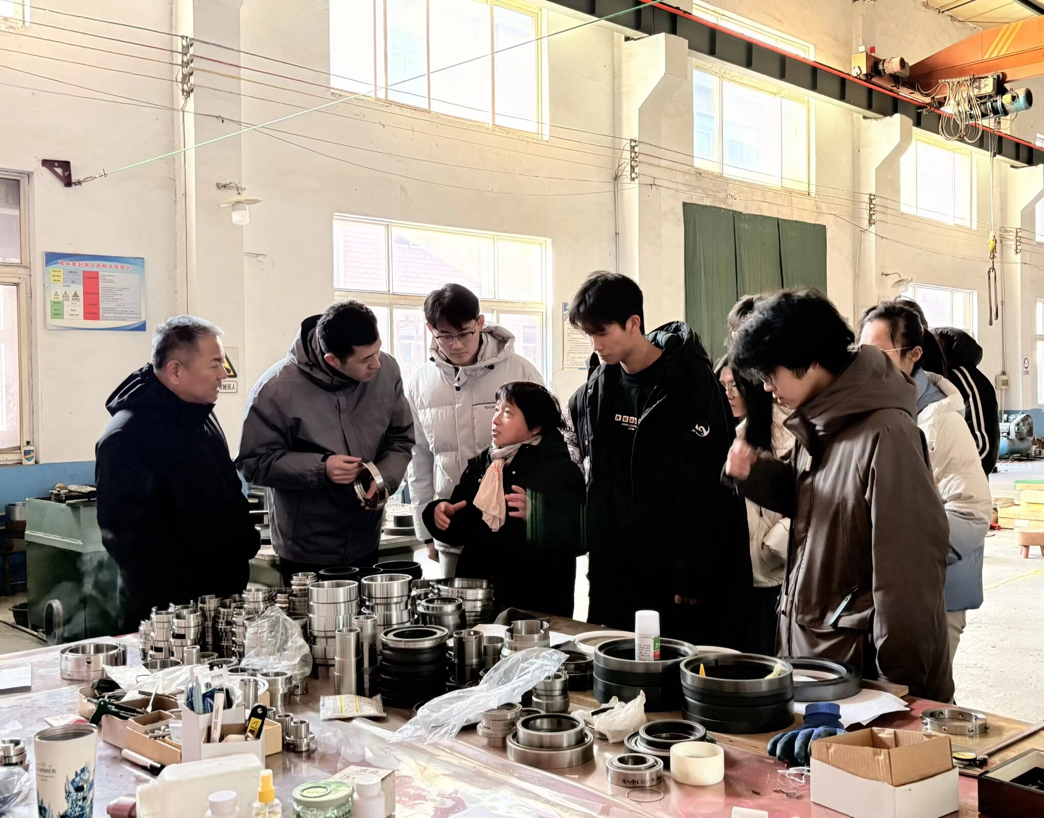 “原来课本里的施工工艺,在现场是这样落地的!”队员们一边记录,一边与企业技术骨干热烈探讨。从密封件生产到机械组装,从施工细节到工艺创新,沉浸式观察让成员们真切触摸到行业发展的脉搏。