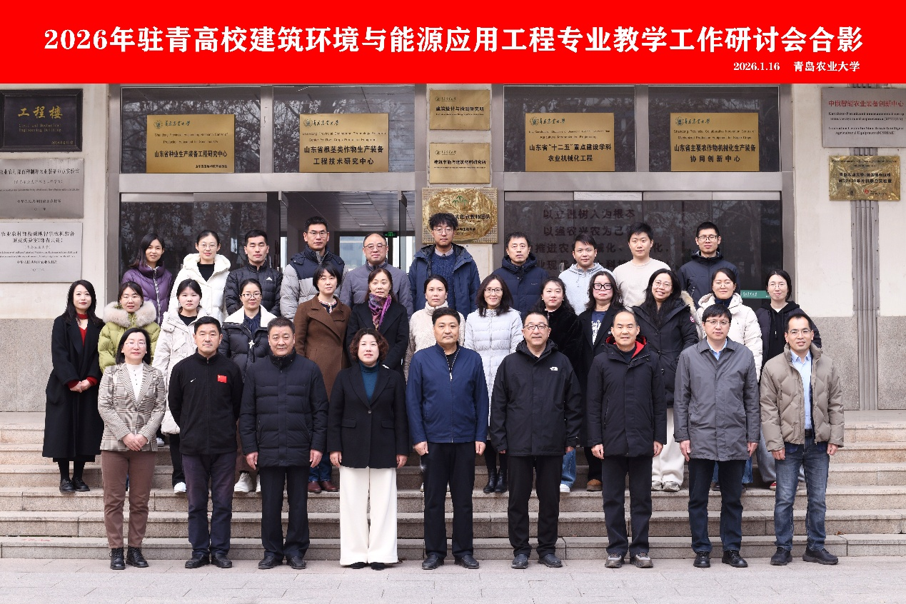 2026年1月16日,由青岛市制冷学会主办、青岛农业大学承办的“2026年驻青高校建筑环境与能源应用工程专业教学工作研讨会”在青岛顺利召开。会议旨在深化专业教学改革,推动师资队伍建设与人才培养质量提升,加强驻青高校建环专业教师之间的交流与合作。来自青岛理工大学、中国石油大学(华东)、山东科技大学、青岛滨海学院、青岛农业大学等驻青高校的40余名专业教师代表齐聚一堂,共同围绕专业建设与发展开展深入研讨。