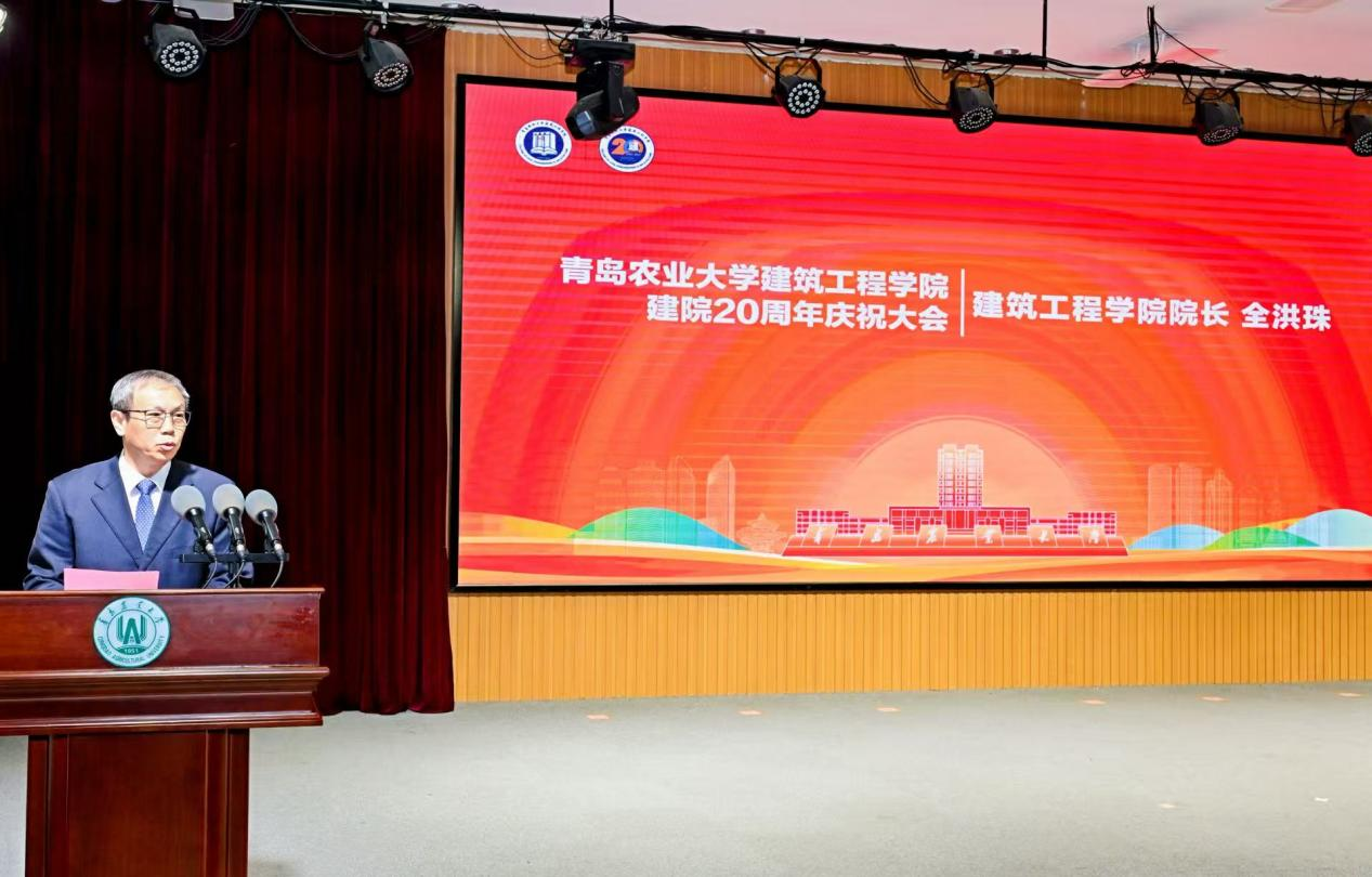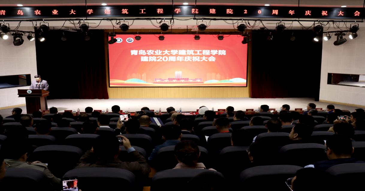 2025年11月8日,建筑工程学院建院20周年庆祝大会于学术会馆圆满举行。青岛农业大学党委副书记田义轲、青岛农业大学原党委副书记刘国秋、青岛市建筑业协会秘书长周兵一、青岛市城阳区委常委、区委宣传部部长吕永翠、华联建筑科技集团有限公司董事长李尊强、淄博市建筑设计研究院有限公司党委书记、董事长宋士军、滨州市海拓房地产开发有限公司董事长杨立田、日照职业技术学院党委委员、副校长徐锡权、青岛农业大学动物科技学院正处级干部刘学兵、青岛农业大学网络信息管理处处长牟肖光、青岛农业大学建筑工程学院原副院长栾明川等出席庆典,同时,参加庆祝大会的还有学院领导班子成员、校友代表、教师代表以及在学院工作学习过的师生代表共同出席。大会由学院党委书记唐传成主持。